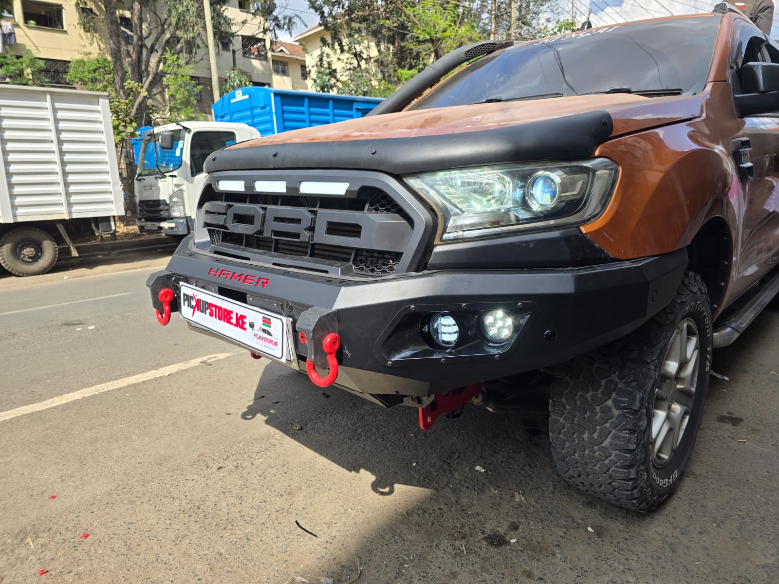 - High Performance Material; front Bumper is made of 5/32 inch thick neutral steel plate and 2 inch x 0.120 inch steel pipe and is completed in advanced three-stage black powder coating for long-lasting durability.