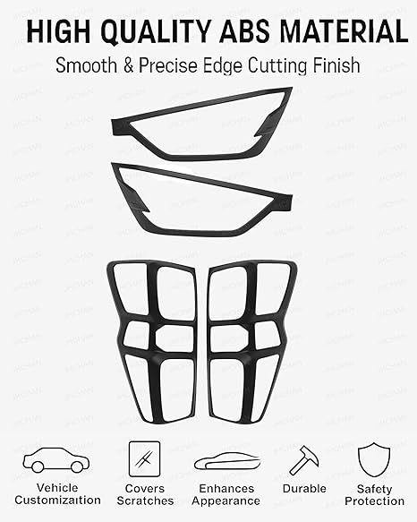 - ✅ SIMPLE INSTALLATION – Matte black for isuzu dmax light cover trim are simple to fitting, no trimming, just out the bag, peel off the tape backing, stick on the place