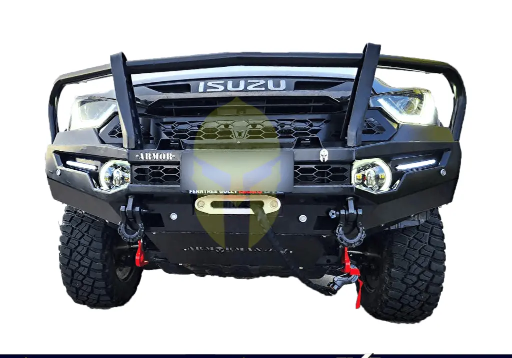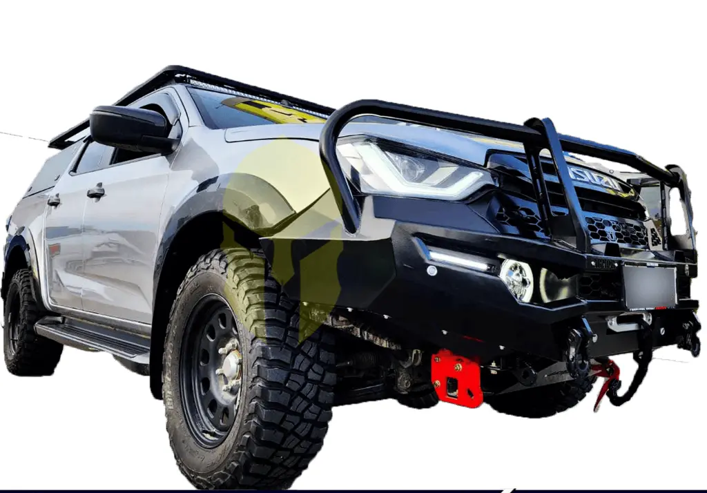 The Isuzu D-Max Front Steel Bullbar offers heavy-duty protection, winch compatibility, and enhanced off-road functionality while maintaining airbag safety compliance.