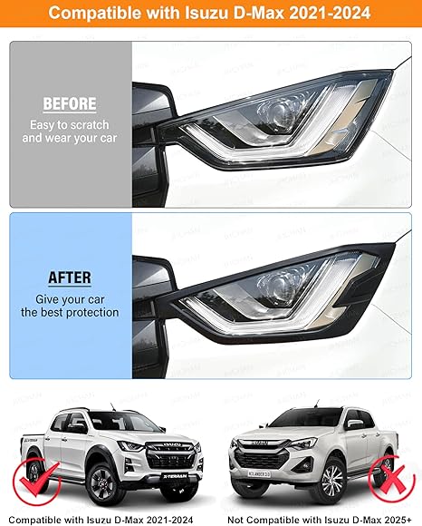 - SIMPLE INSTALLATION – Matte black for isuzu dmax light cover trim are simple to fitting, no trimming, just out the bag, peel off the tape backing, stick on the place.