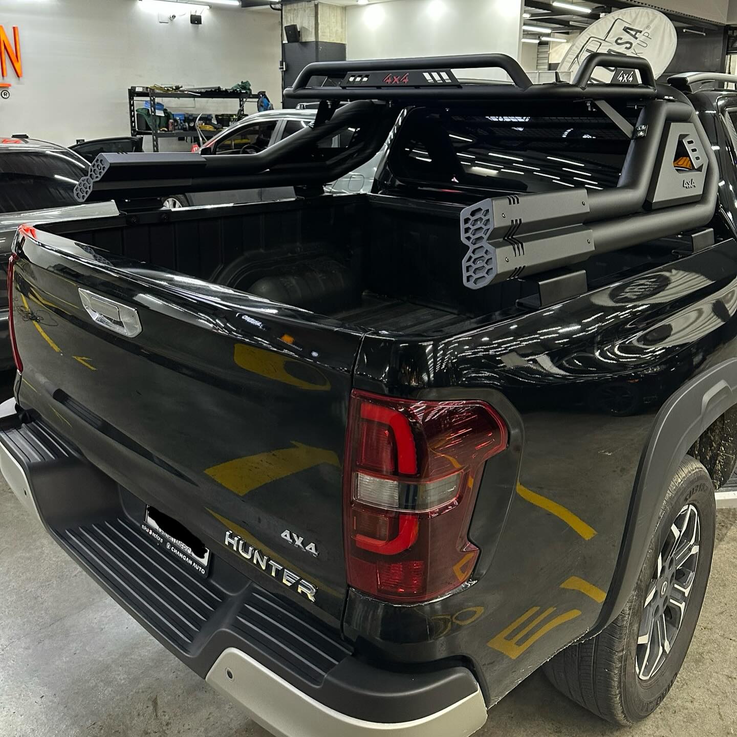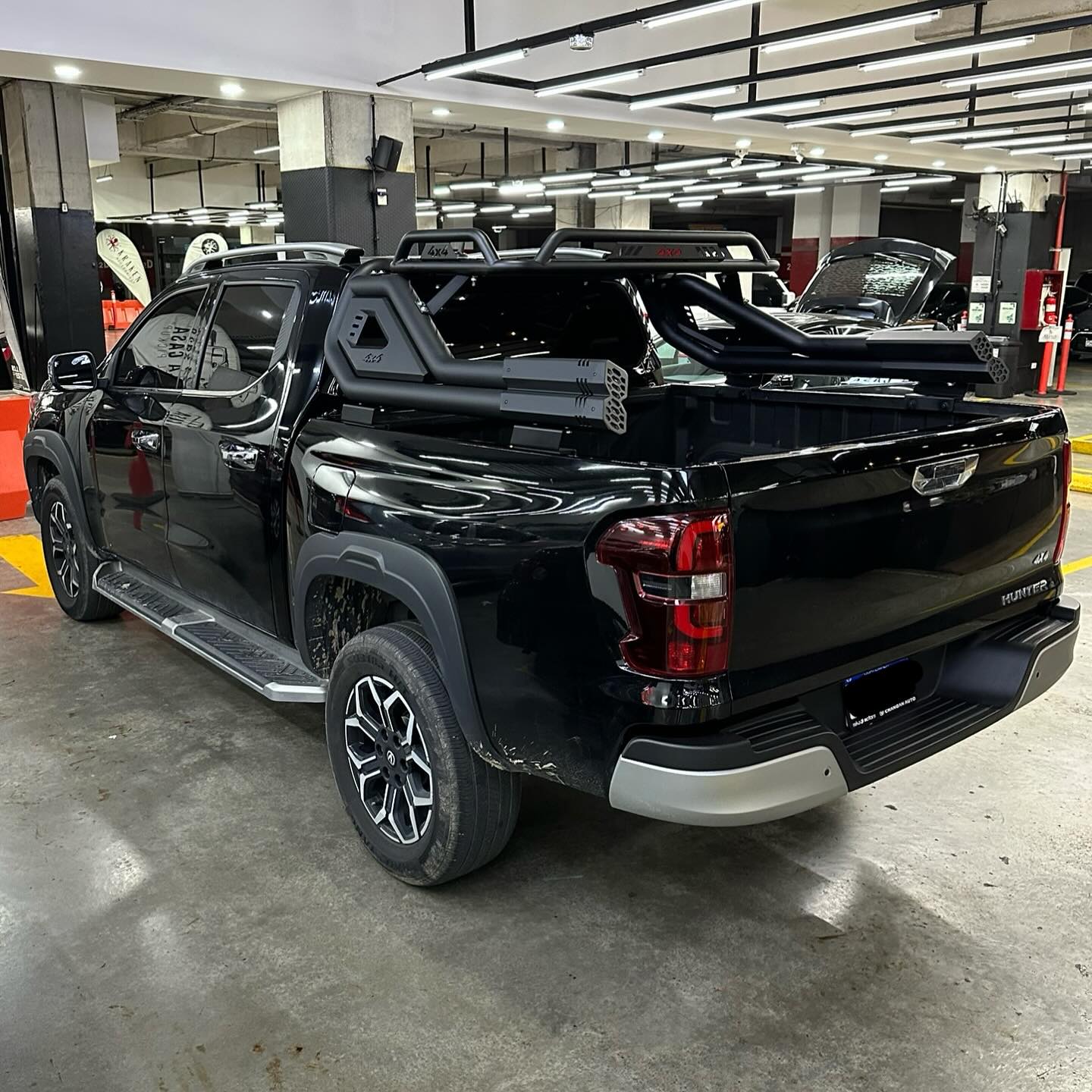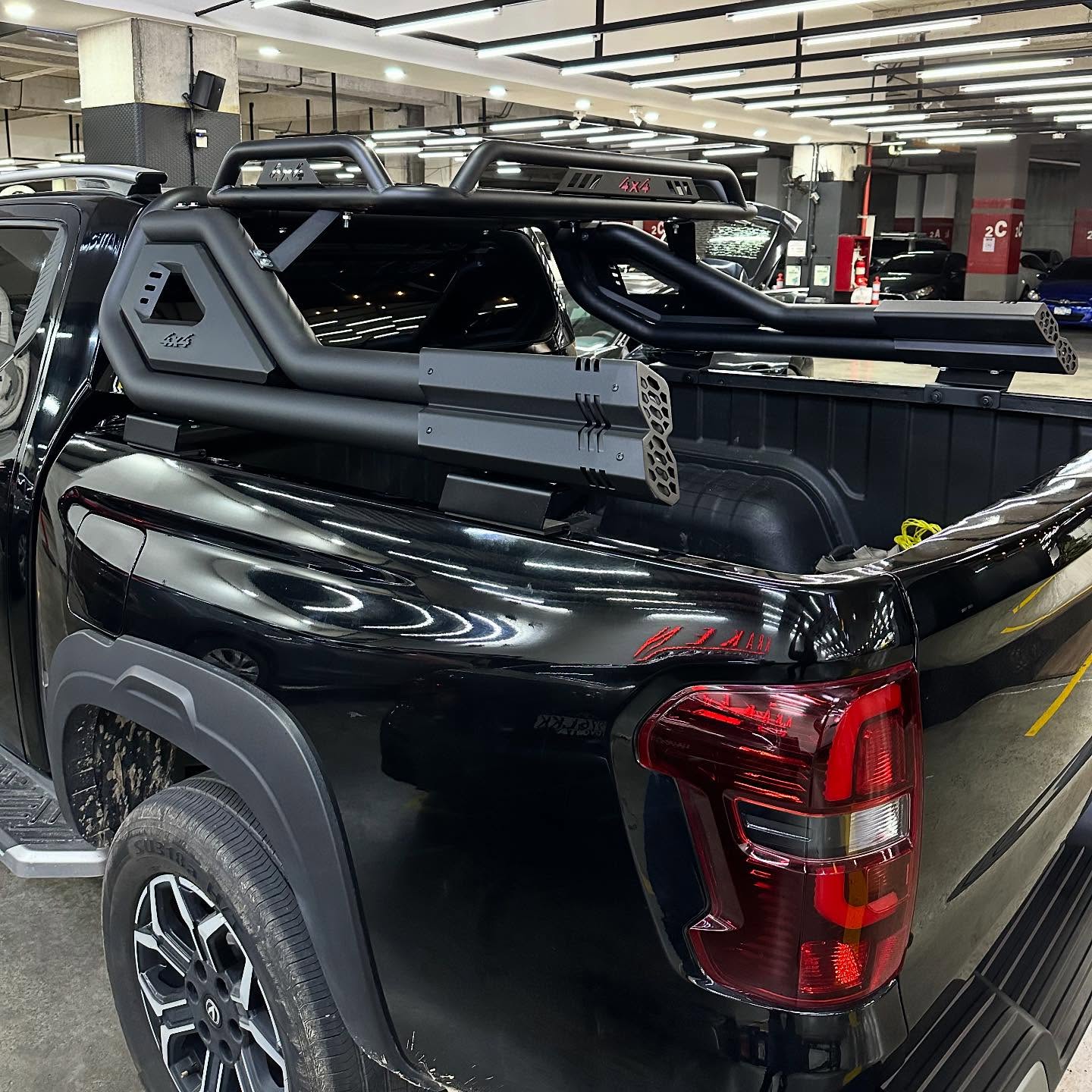 A matte black rollbar with basket combines rugged style with practical utility, offering enhanced cargo capacity, vehicle protection, and off-road aesthetics. It’s a popular upgrade for pickups like the Toyota Hilux, Ford Ranger, Isuzu D-Max, and Mitsubishi L200.