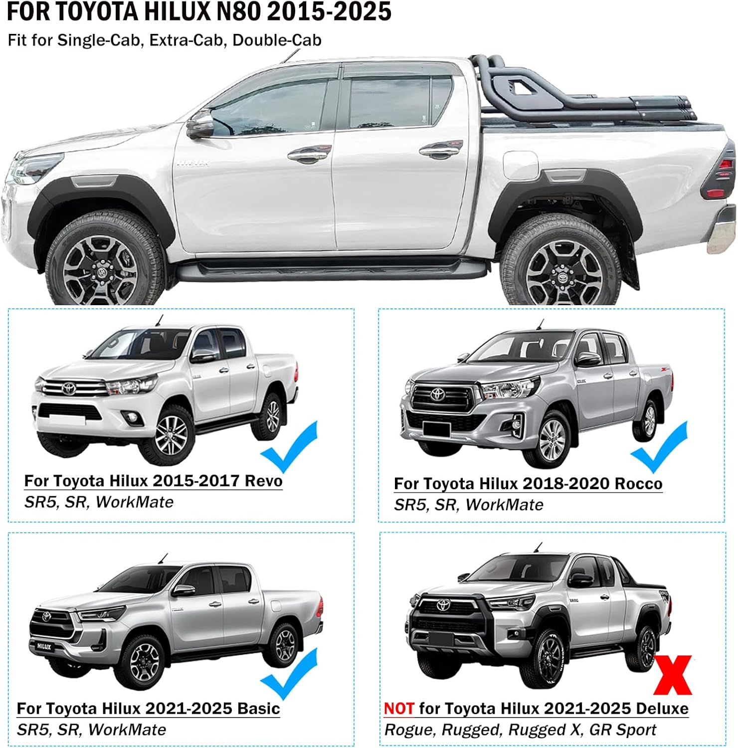- Designed for Toyota Hilux Revo (2015–2025) models, ensuring seamless installation without gaps.