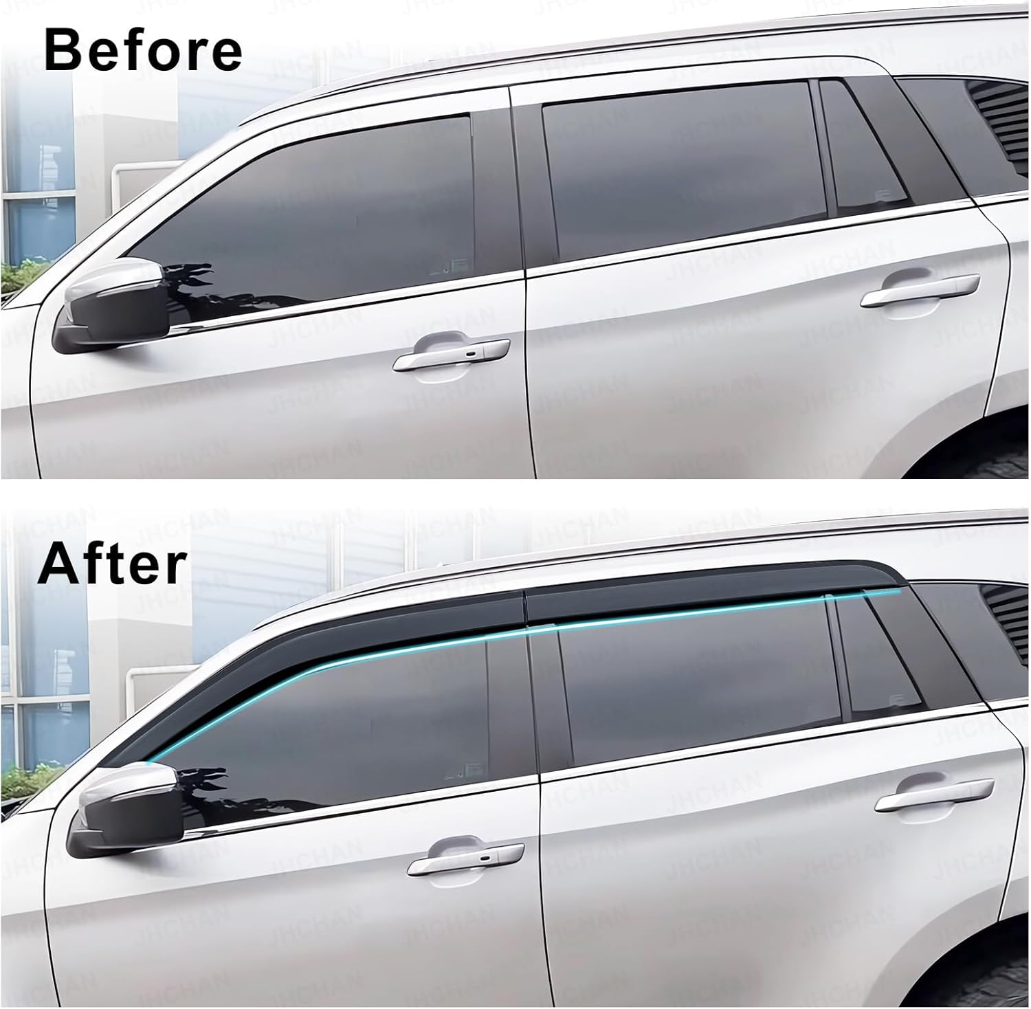 - Full Set: Includes 4 pieces (front and rear door visors).
